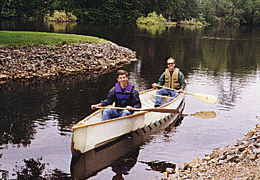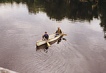 Off to the river for the maiden voyage. Our canoe is a Tripper designed for camping and voyaging. The design has a gentle vee bottom. Some of my friends feared it might not be very stable. It is very stable in calm or rough water.